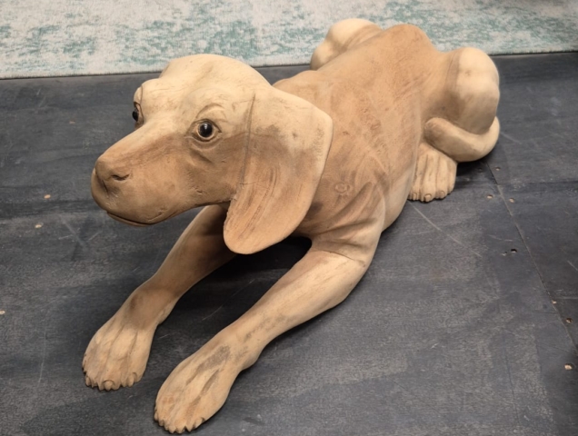 dit is een hond gemaakt van teak hout
