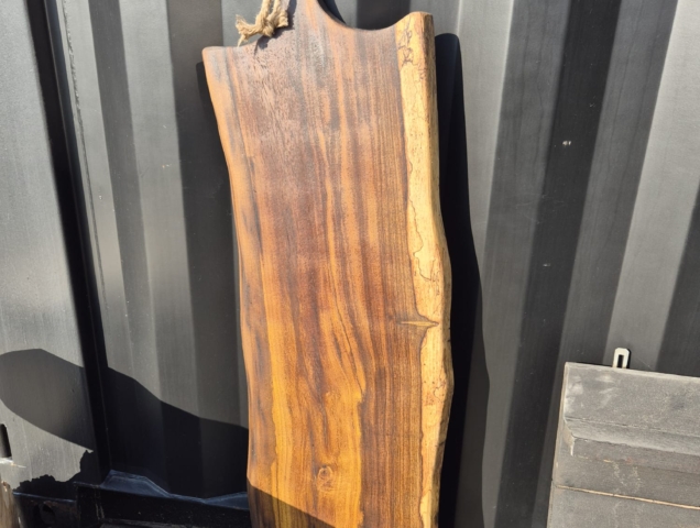 Deze robuuste serveer- en snijplank van massief hout is een echte blikvanger in iedere keuken. Dankzij de natuurlijke houtnerf en de organische vorm heeft de plank een uniek karakter. De plank is met de hand afgewerkt, waardoor het hout zijn warme en natuurlijke uitstraling behoudt.